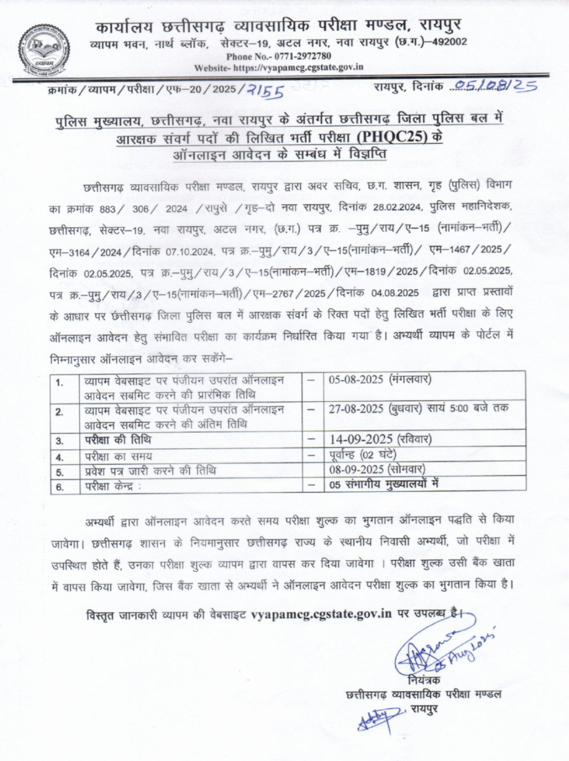 • आवेदन वेबसाइट: इच्छुक उम्मीदवार https://vyapamcg.cgstate.gov.in पर जाकर आवेदन कर सकते हैं।
