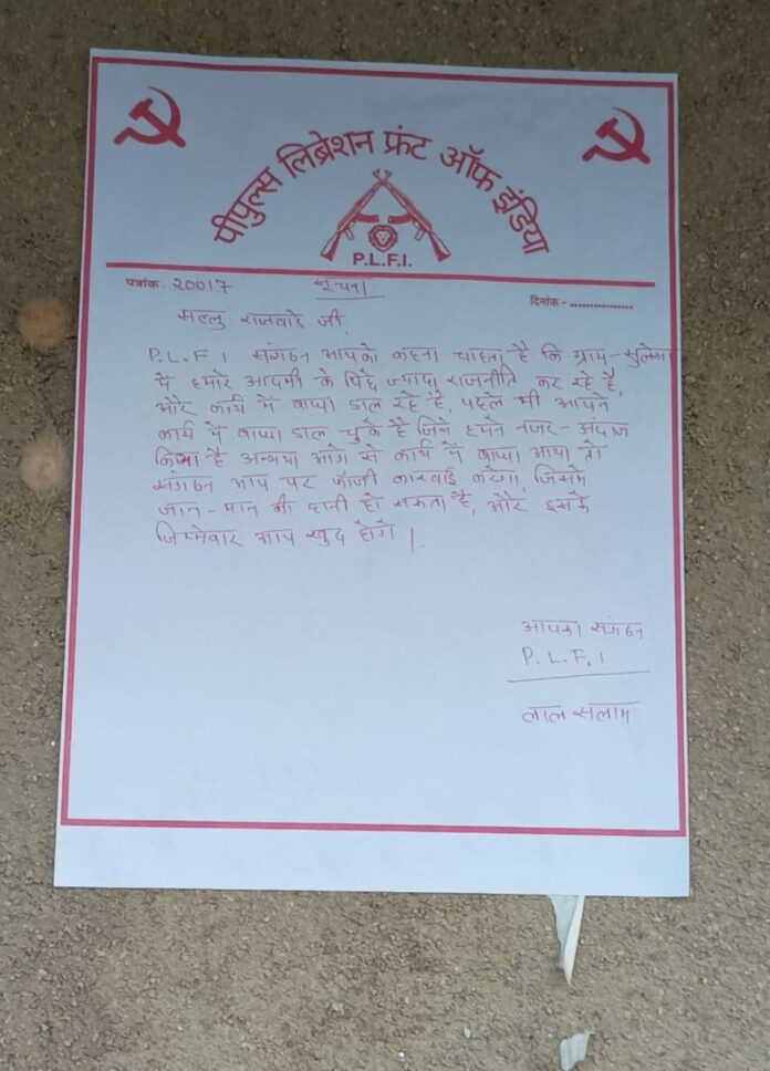 HomeUncategorizedजशपुर के सुलेशा में नक्सली धमकी: पूर्व उपसरपंच को PLFI ने...