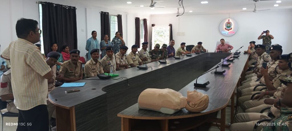 जशपुर: 16 अक्टूबर 2025। इंडियन रेडक्रॉस सोसायटी राष्ट्रीय मुख्यालय नई दिल्ली एवं परिवार स्वास्थ्य कल्याण मंत्रालय के निर्देशानुसार, पूरे देश में 13 से 17 अक्टूबर 2025 तक मनाए जा रहे सी.पी.आर. जागरूकता सप्ताह के चौथे दिन, जशपुर पुलिस अधीक्षक कार्यालय में एक वृहद प्रशिक्षण कार्यक्रम आयोजित किया गया। पुलिस अधीक्षक श्री शशि मोहन सिंह के निर्देशन एवं मार्गदर्शन में आयोजित इस कार्यक्रम का उद्देश्य पुलिस अधिकारियों/कर्मचारियों को जीवन रक्षक कौशल के रूप में सी.पी.आर. (Cardio Pulmonary Resuscitation) के महत्व और तकनीक से अवगत कराना था।