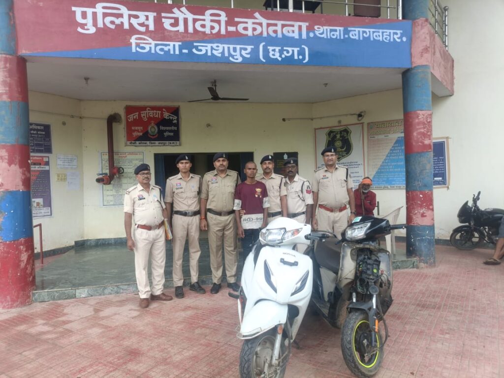 जशपुर/प्रखर संवाद न्यूज़ : जशपुर पुलिस ने कोतबा में एक सरकारी शराब दुकान में चोरी के प्रयास का खुलासा करते हुए दो आरोपियों को गिरफ्तार कर लिया है। पकड़े गए आरोपियों की निशानदेही पर पुलिस ने एक स्कूटी चोरी का मामला भी सुलझा लिया है। गिरफ्तार किए गए आरोपियों की पहचान भुवनेश्वर यादव (22) और संजय कुमार राठिया के रूप में हुई है, दोनों रायगढ़ जिले के रहने वाले हैं।