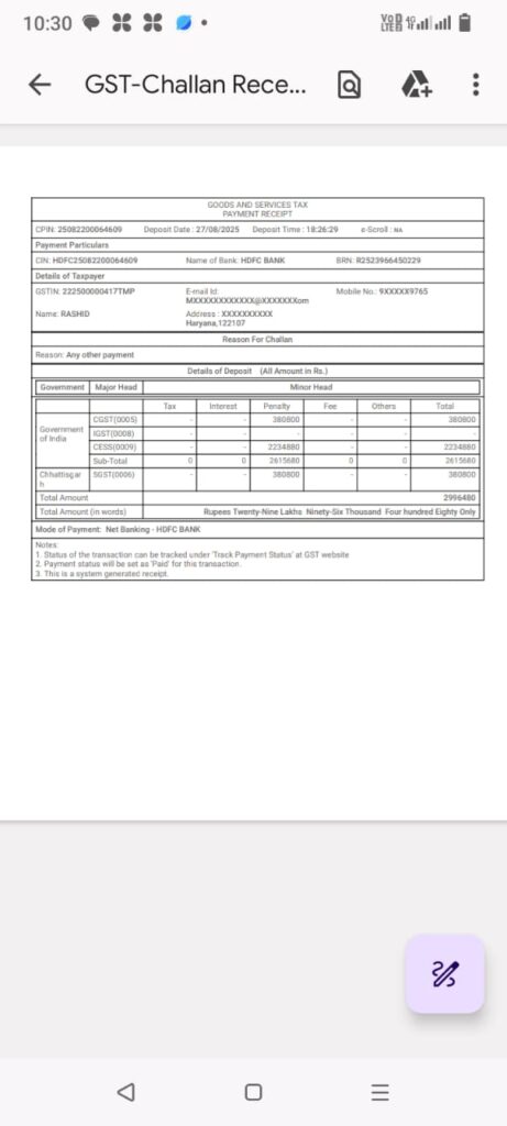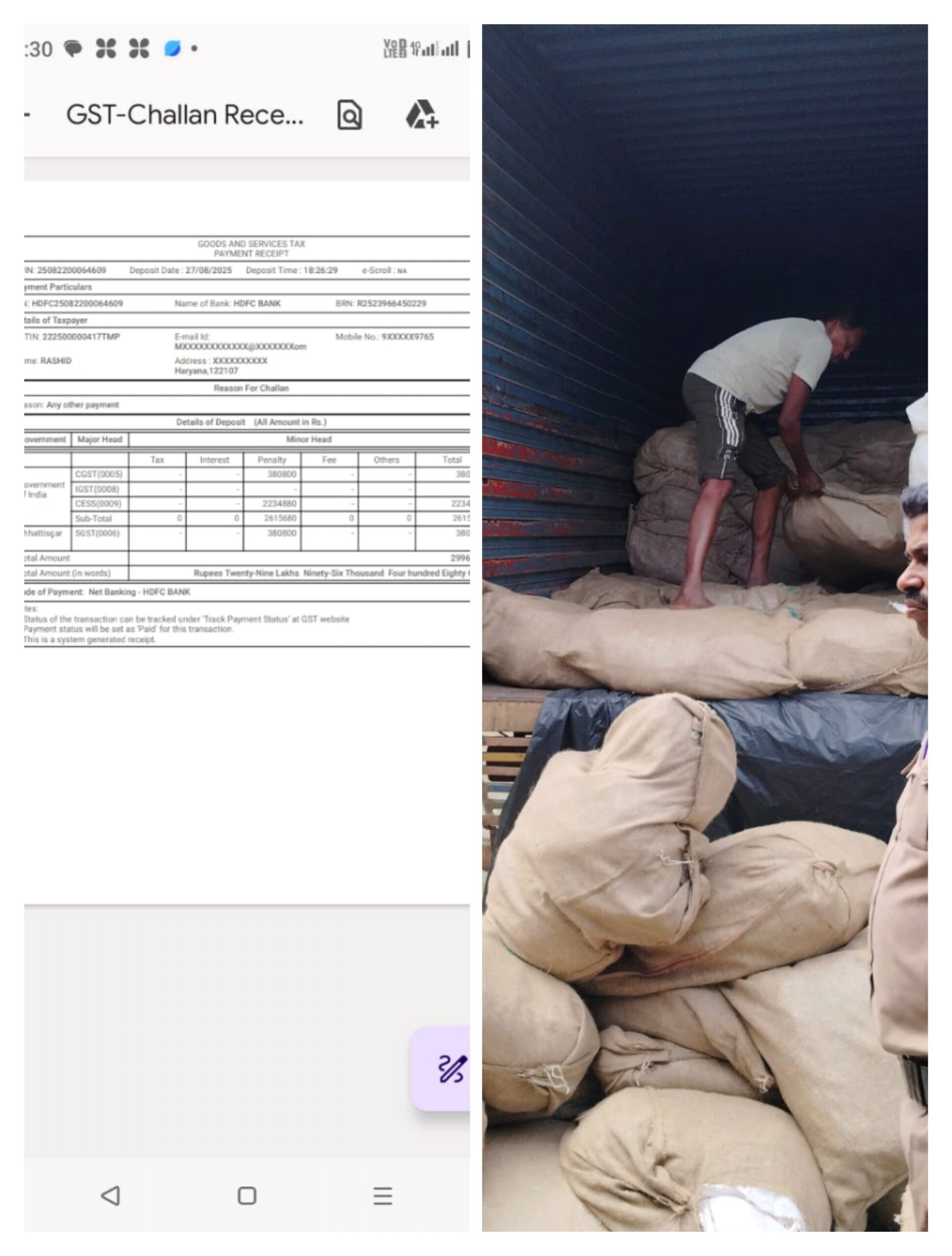 यह कार्रवाई बताती है कि पुलिस अब सिर्फ अपराधों को रोकने तक ही सीमित नहीं है, बल्कि आर्थिक अपराधियों पर भी नकेल कस रही है।जीएसटी विभाग का भारी जुर्मानापुलिस के प्रतिवेदन पर जीएसटी विभाग ने अपनी जांच शुरू की। जांच में पाया गया कि ट्रक चालक/मालिक राशिद खान ने भारी मात्रा में जीएसटी की चोरी की है। इस वित्तीय अनियमितता के लिए जीएसटी विभाग ने राशिद खान पर ₹29 लाख 96 हजार 480 का जुर्माना लगाया, जिसे उससे भरवाया गया है।