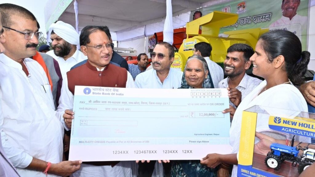 मुख्यमंत्री श्री विष्णु देव साय ने कहा कि बड़ी ख़ुशी की बात है कि किसान हित में दो नई योजनाओं में छत्तीसगढ़ के तीन जिलों जशपुर, कोरबा और दंतेवाड़ा को भी शामिल किया गया है। इसके लिए मैं छत्तीसगढ़ की तीन करोड़ जनता की ओर से विशेष रूप से प्रधानमंत्री श्री नरेन्द्र मोदी और केन्द्रीय कृषि मंत्री श्री शिवराज सिंह चौहान के प्रति आभार व्यक्त करता हूं। उन्होंने इन दो नई योजनाओं के लिए प्रदेश के किसानों को बधाई और शुभकामनाएं दी। मुख्यमंत्री श्री साय ने कहा कि इन योजनाओं से खेती-किसानी की तस्वीर बदलेगी और आर्थिक सम्पन्नता भी आएगी। मुख्यमंत्री श्री साय ने योजनाओं के शुभारंभ के अवसर पर कृषि विभाग द्वारा लगाए गए स्टालों का निरीक्षण किया और कृषि अभियांत्रिकी सब मिशन योजना के तहत किसानों को टैªक्टरों, कृषि उपकरणों की चाबी भी सौपी और अनुदान राशि का चेक प्रदान किया।