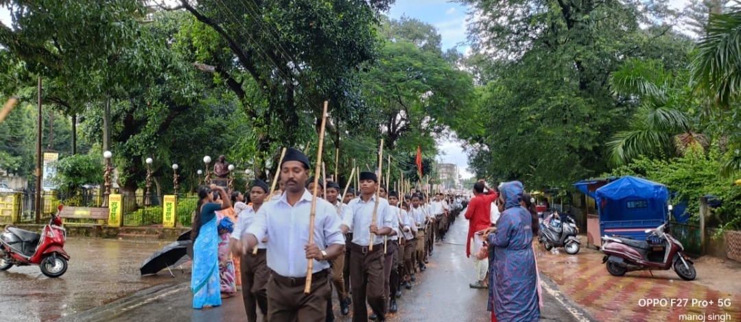 भारी बरसात के बावजूद जशपुर नगर में रविवार को विजयदशमी पथ संचलन निर्धारित समय पर निकला। शताब्दी वर्ष के अंतर्गत नगर की छह बस्तियों में अलग-अलग तिथियों पर संचलन आयोजित होना है। इसकी शुरुआत राजेंद्र नगर बस्ती से हुई।