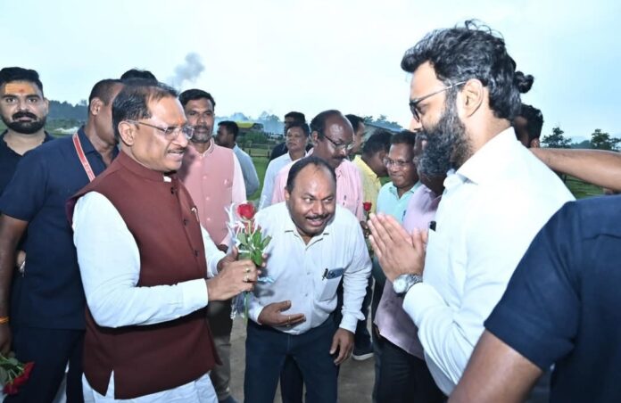 मुख्यमंत्री श्री विष्णुदेव साय का बगीया हेलीपैड मे हुआ आत्मिय स्वागत,प्रशानिक आधीकारी एवं जन प्रतिनिधीययो के पुष्प देकर किया भब्य स्वागत..