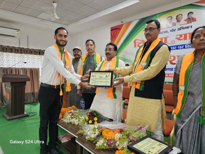 बलरामपुर छत्तीसगढ़ :- भारतीय जनता पार्टी जिला कार्यालय बलरामपुर के सभा कक्ष में “मोर तिरंगा मोर अभियान” तिरंगा यात्रा जिला स्तरीय कार्यशाला कार्यक्रम प्रभारी व भाजपा जशपुर के पूर्व जिला अध्यक्ष सुनील गुप्ता के मुख्य आतिथ्य एवं विशिष्ट अतिथि प्रतापपुर विधानसभा के विधायक श्रीमती शकुंतला सिंह पोर्ते एवं भाजपा जिला अध्यक्ष ओमप्रकाश जायसवाल के अध्यक्षता में संपन्न हुई।
