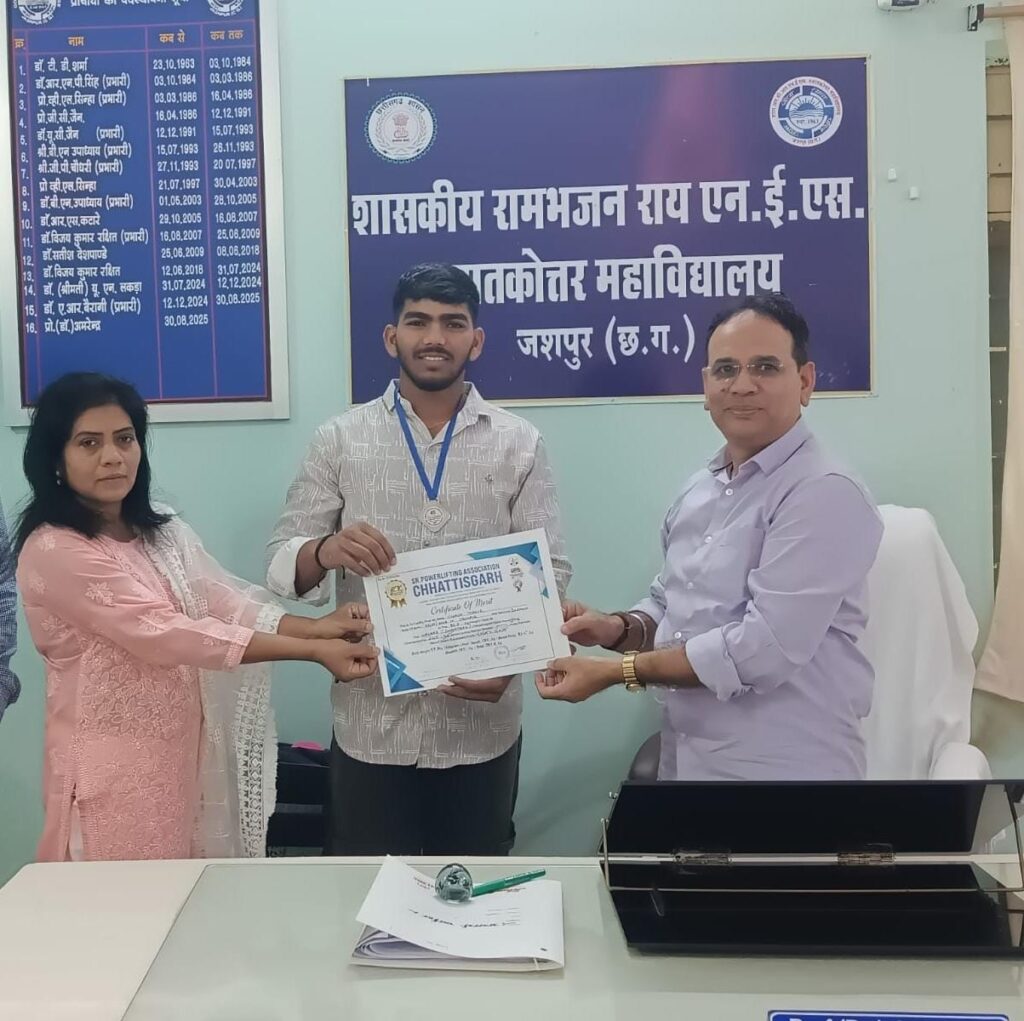 कॉमर्स छात्र विकास ने राज्य स्तरीय वेटलिफ्टिंग में रजत पदक जीत कर महाविद्यालय और जशपुर जिले का नाम किया रोशन!