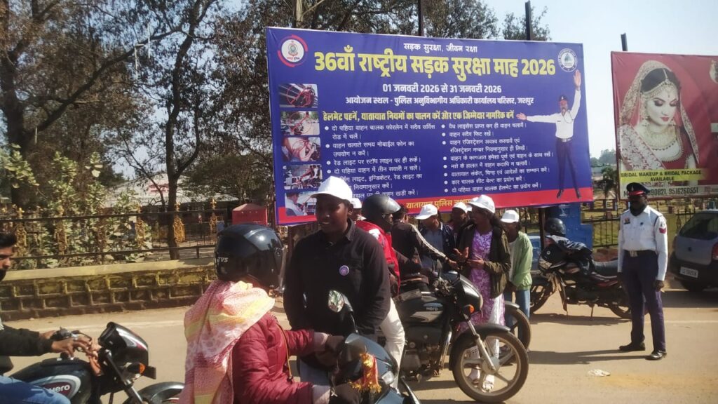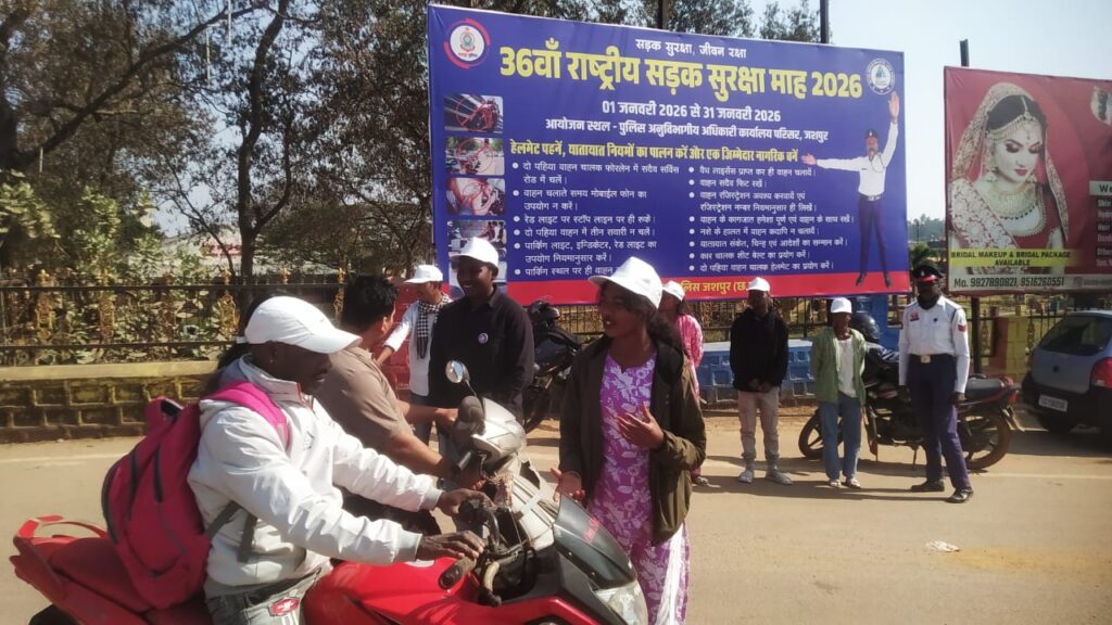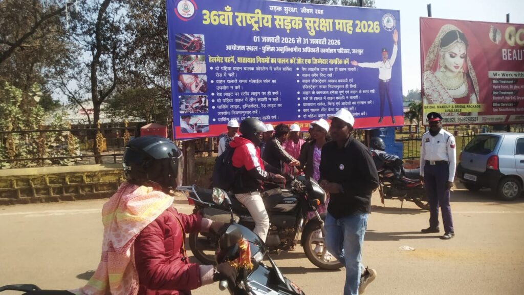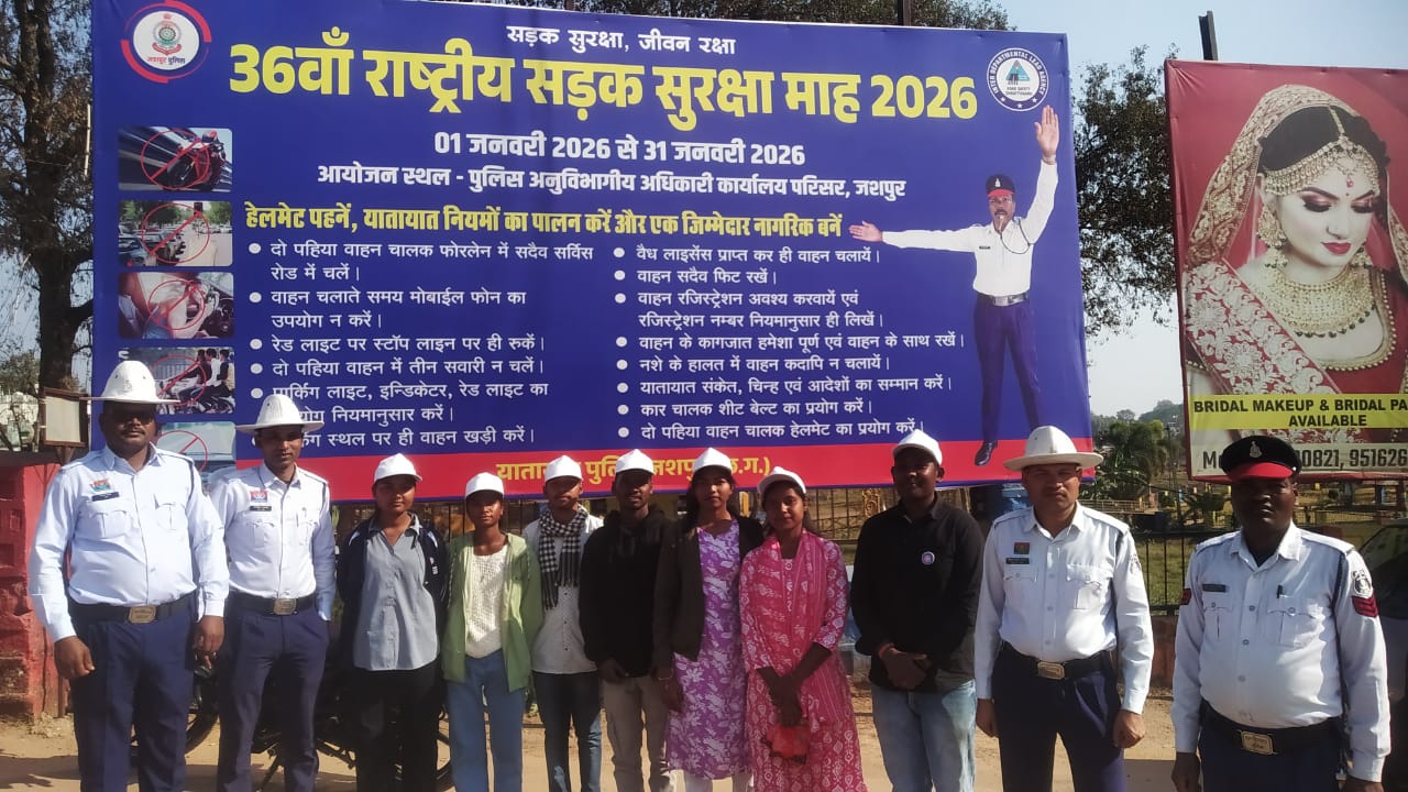 जशपुर। यातायात जागरूकता माह के अंतर्गत शासकीय राम भजन राय एन.ई.एस. महाविद्यालय, जशपुरनगर की राष्ट्रीय सेवा योजना (एनएसएस) इकाई के स्वयंसेवकों ने वरिष्ठ पुलिस अधीक्षक श्री शशि मोहन सिंह के मार्गदर्शन तथा यातायात पुलिस के सहयोग से नगर की यातायात व्यवस्था को सुगम एवं सुरक्षित बनाने हेतु जागरूकता अभियान चलाया। अभियान से पूर्व सभी स्वयंसेवकों को यातायात पुलिस द्वारा यातायात नियमों, संकेतों एवं नागरिकों से संवाद की विधियों का विशेष प्रशिक्षण दिया गया, जिसके पश्चात प्रशिक्षित स्वयंसेवकों ने नगर के प्रमुख चौक-चौराहों पर जागरूकता गतिविधियाँ संचालित कीं।